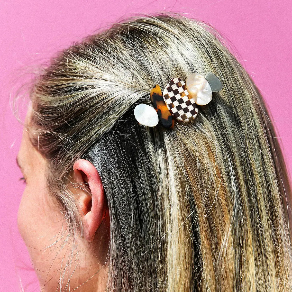 All Hair Claws and Clips are designed by Jemima Kingston in her Australian studio. They are made outside of Australia and mainly comprised of a plant based biodegradable acetate also with a mix of regular acetate, pearls, paint work and metal components.