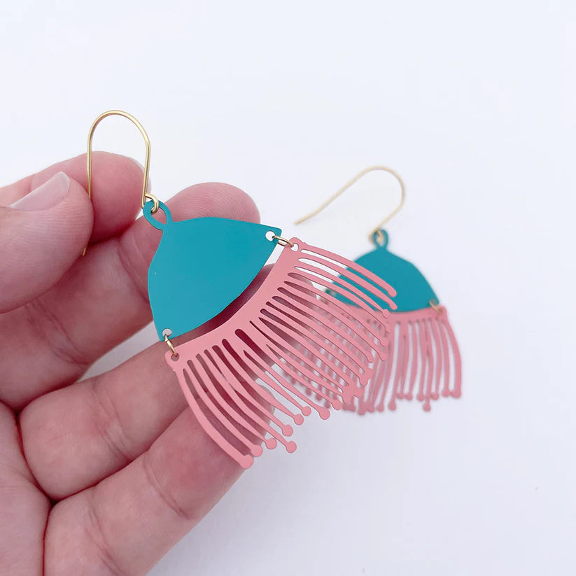 Cheer up any outfit with these charming Gum Blossom Dangles! These lightweight earrings feature the most stunning combo of Teal & Peach, the perfect way to add a subtle and feminine flair to your day.