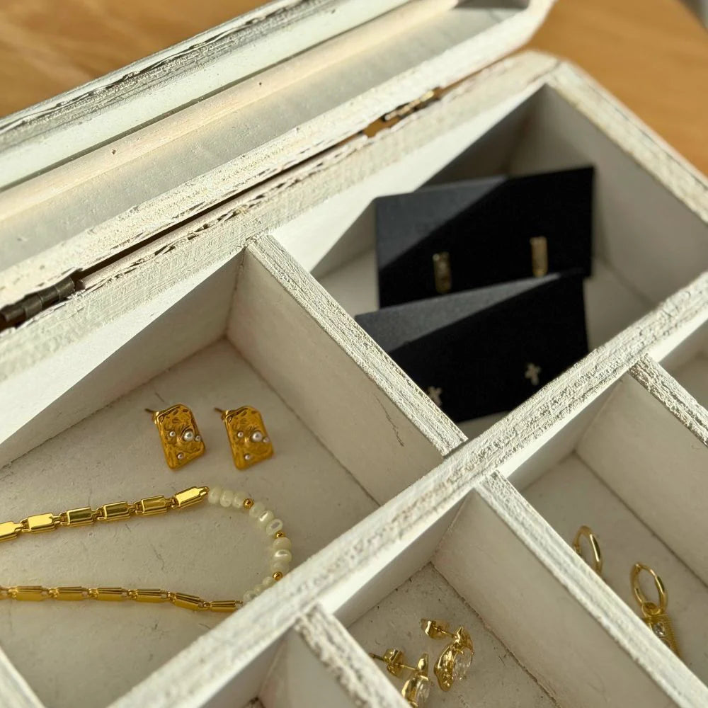 CARE INSTRUCTIONS: Your jewellery will tarnish over time due to oxygen, chemicals and body natural oils, to reduce please store in a sealed bag or box. Don’t spray perfume on your jewellery and let moisturiser dry before putting it on. Always remove your jewellery when exercising, showering or swimming.