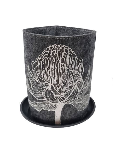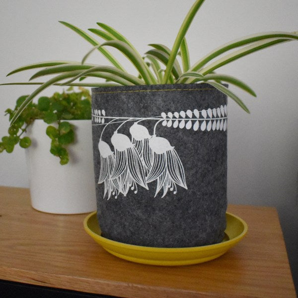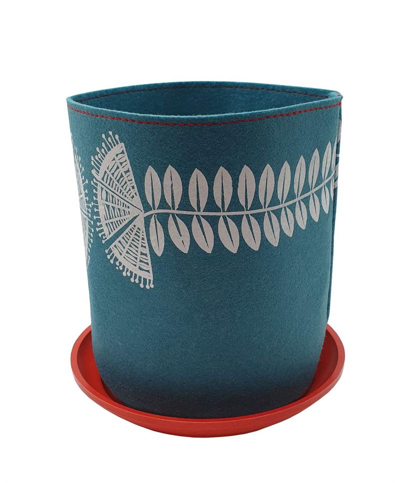 The Ecofelt growbags are decorated with Jo luping’s popular designs of kowhai, fern fronds and pohutakawa.