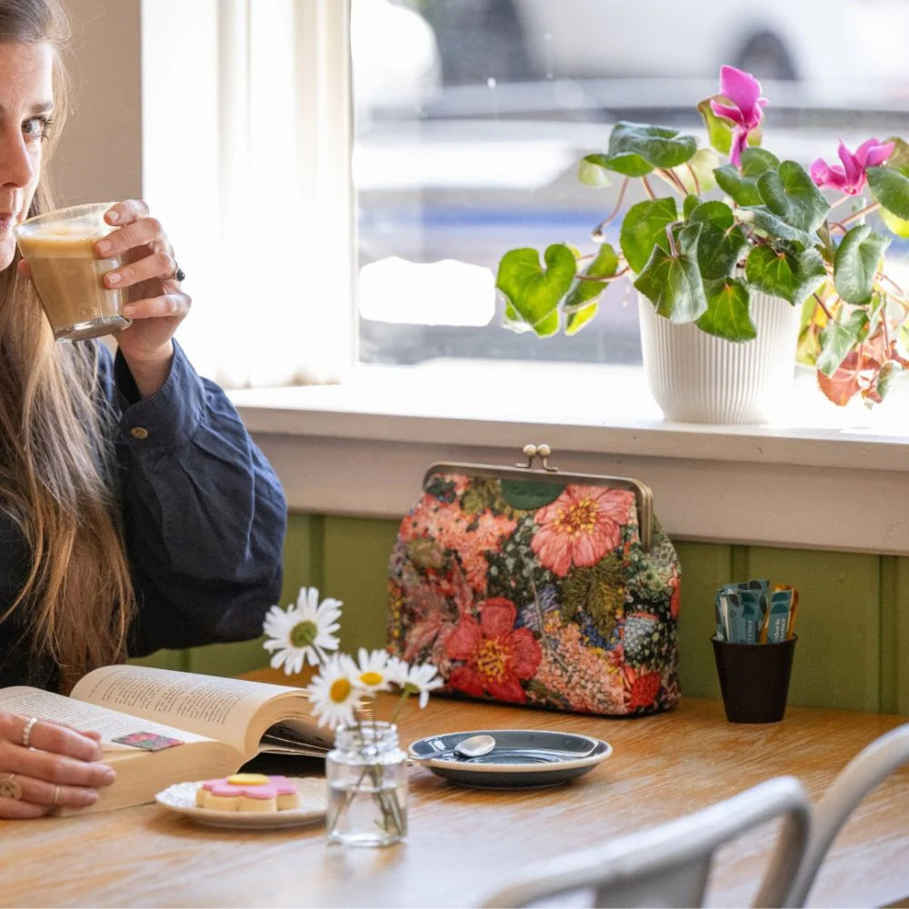 For Fleur this is the perfect size to fit her phone, glasses, embroidery supplies, lip balm for a bag inside her bag when travelling. Regularly it ends up holding shells, seeds, threads and other treasures she collects as she wanders through the world, taking it slow, enjoying the journey.
