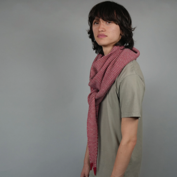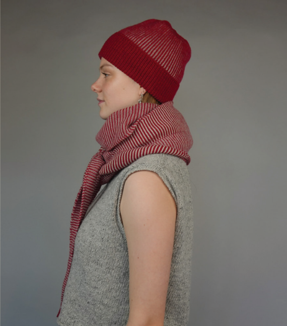 The generous length of the Punakaiki Scarf allows it to wrap a couple of times around the neck.