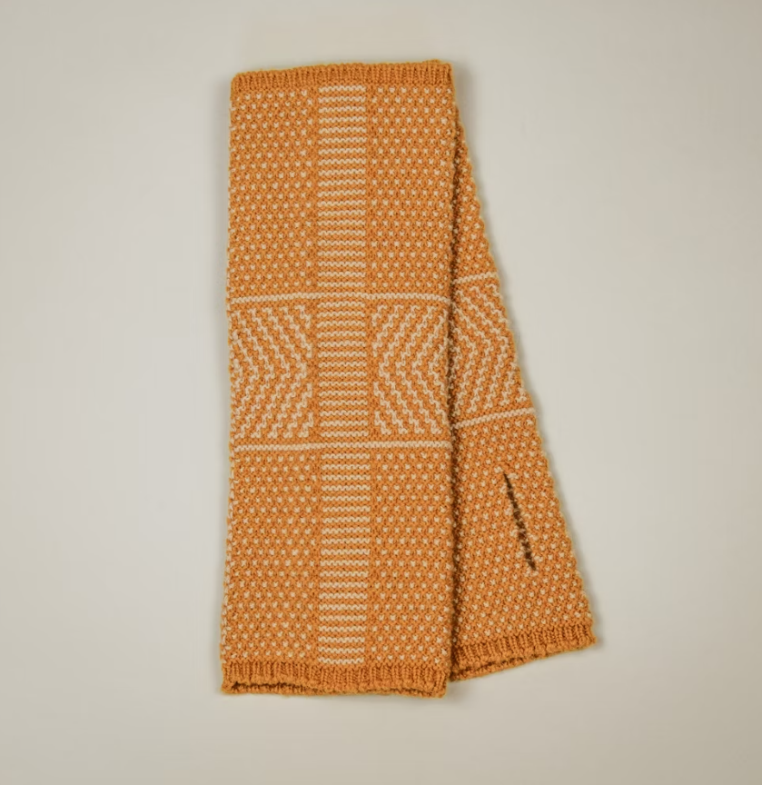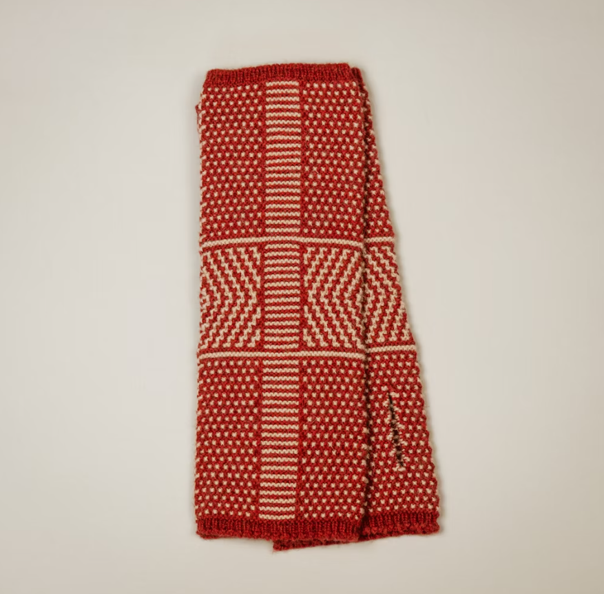 Taranaki Maunga, Mt Taranaki, and its cone shaped form inspired this slip stitch pattern that forms the textile of these wrist warmers. Starting out as a hand-knit swatch they are translated into machine code and made seamlessly on a digital knitting machine. Available in 4 colours, Pōhutukawa (deep red), Kōwhai (ochre yellow) , Ponga (black) and Pikopiko (fern green). 100% camel down 26 cm long x 9 cm wide.