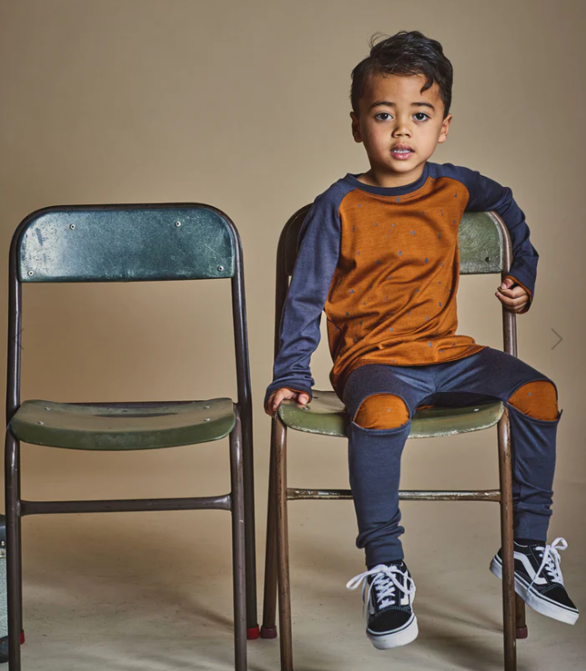 Featuring a slashed peek-a-boo panel at the knee, soft elasticated waist and thick cuffs, Slashers are the perfect leggings. These slim fit leggings are made from 100% single jersey Merino wool and have been designed to keep their shape wear after wear (total score). Model is wearing size 4-5 years. Consider sizing up for a looser fit.