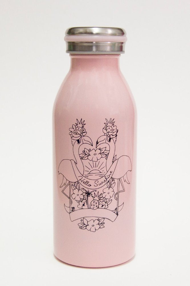 Featuring our unique Misery Guts Hello Sunshine, Flamingo crest, this vintage milk bottle style drinking vessel is eye catching, yet practical. Perfect for little humans and big ones too!