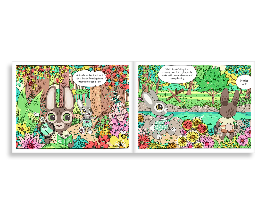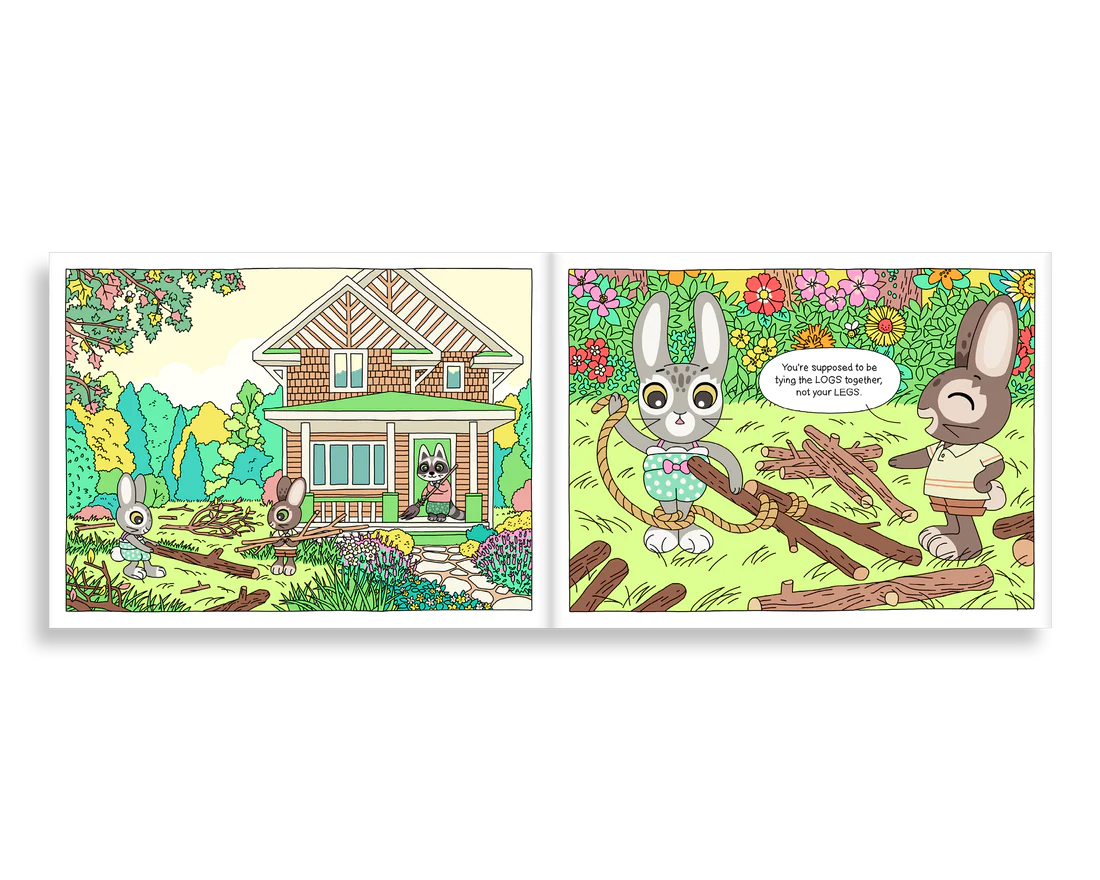 One morning while exploring the woods, Muki and Pickles spot one last peach on the tree across the stream. How will they get across the water to pick it?