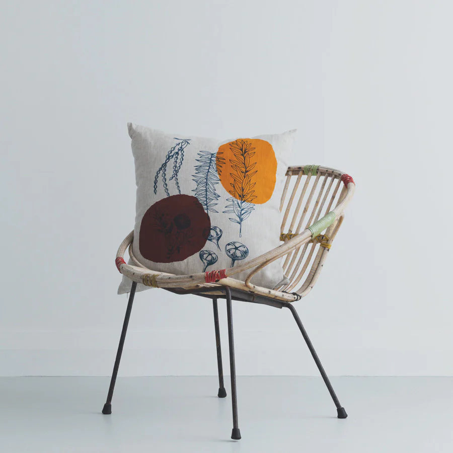 Our NZ Nature design hand screen printed on a 100% European linen cushion cover in Oatmeal.