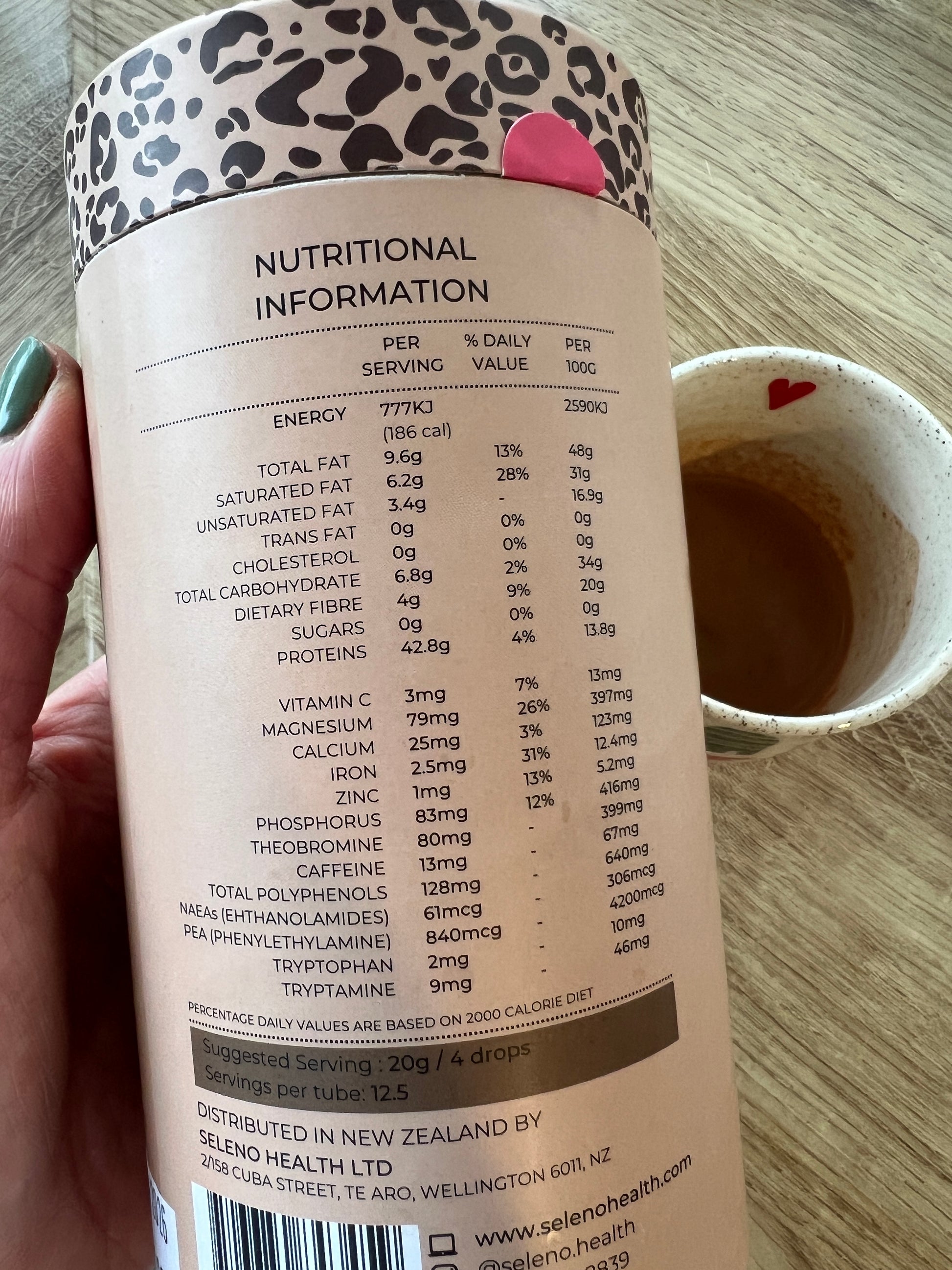 Suggested use: Add 4-5 drops (20-25g) to hot water or hot plant-based milk with or without spices (examples - cinnamon, cloves, vanilla, cayenne) and sweetener (coconut sugar, raw sugar, honey) and blend or whisk until creamy. Each drop weighs 5g.