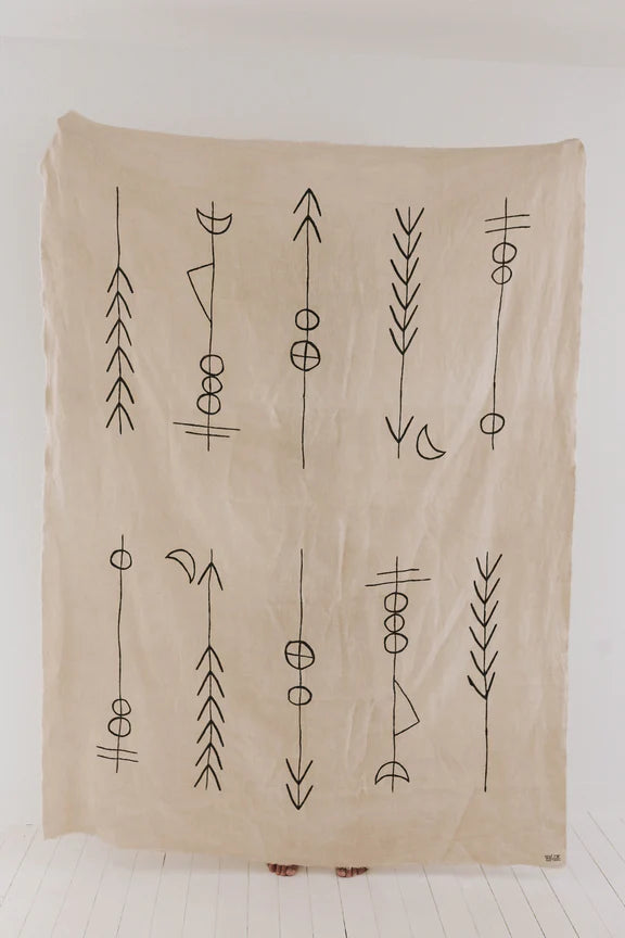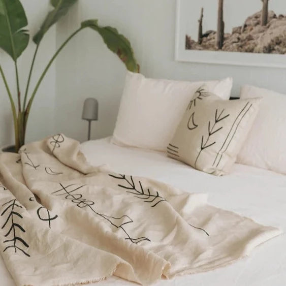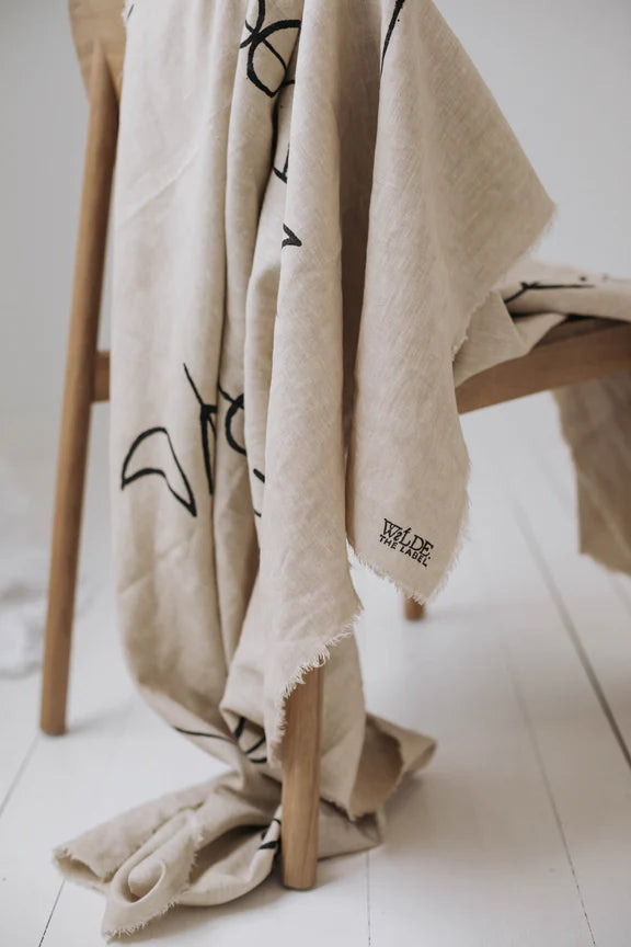 Our beautiful throws are made of 100% linen and are hand-block printed, using natural, non-toxic dyes in custom Wilde colours. Raw hem finish.