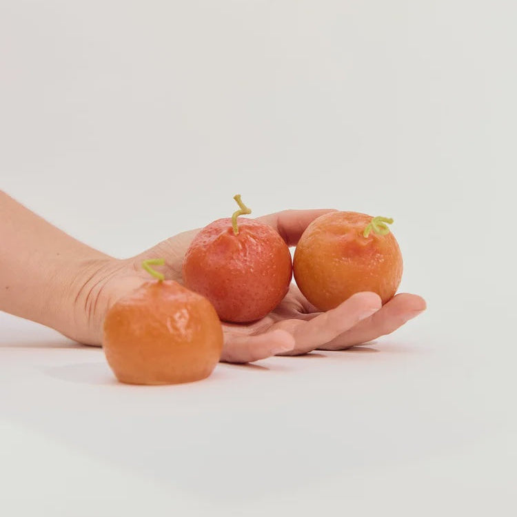 Our fruit and veggie candles are moulded from real produce, so they often carry the charming imperfections of the originals (bumps, dimples, and all), adding to their character and authenticity.