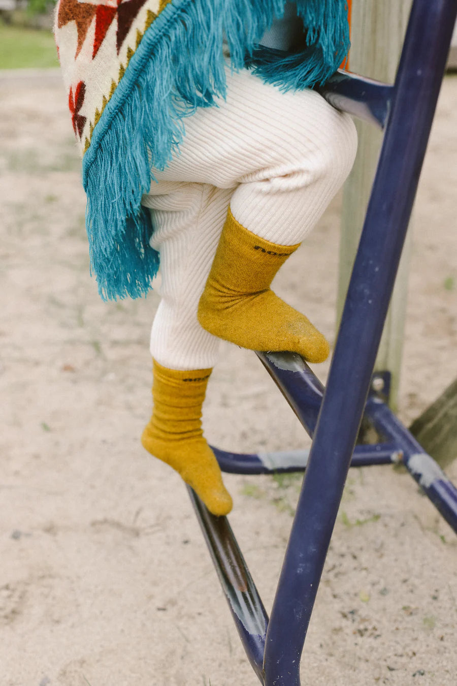 Possum Merino Wool HUKA JUNIOR Socks, Spicy Mustard
