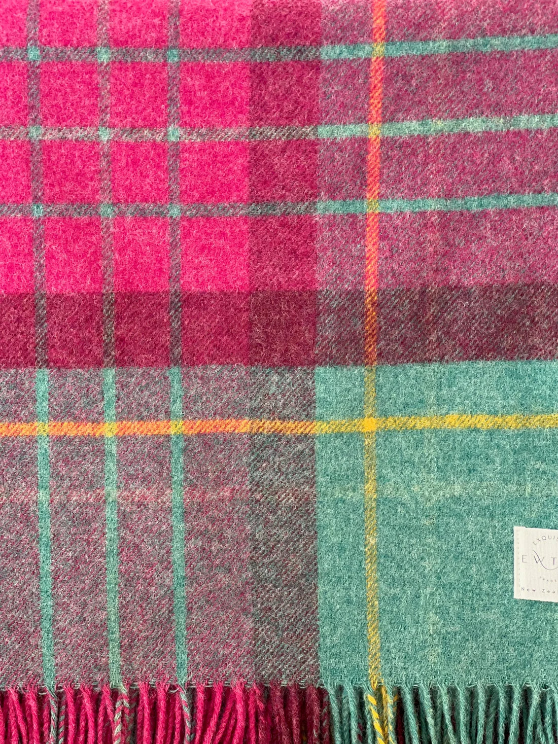 Welcome the vibrant allure of our Saltburn Cerise & Mint 100% Wool Throw into your home, a splendid addition that radiates both style and comfort. Meticulously crafted from pure wool, this throw is a lasting treasure, perfect for enriching your living space.